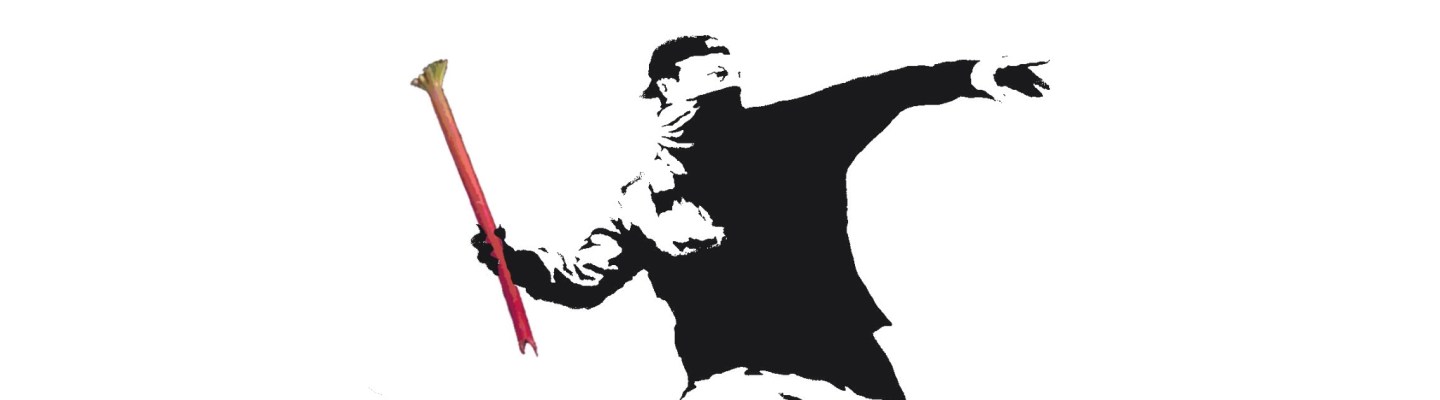 Ali Schmidt at The Huffington Post eloquently pledges her pen to rhubarb’s liberationist cause against the strawberry oppressor: Raw rhubarb’s flavor is “like sowing a million warheads in your cheeks.” (Can warheads be sown in cheeks? Can “Warheads”?)